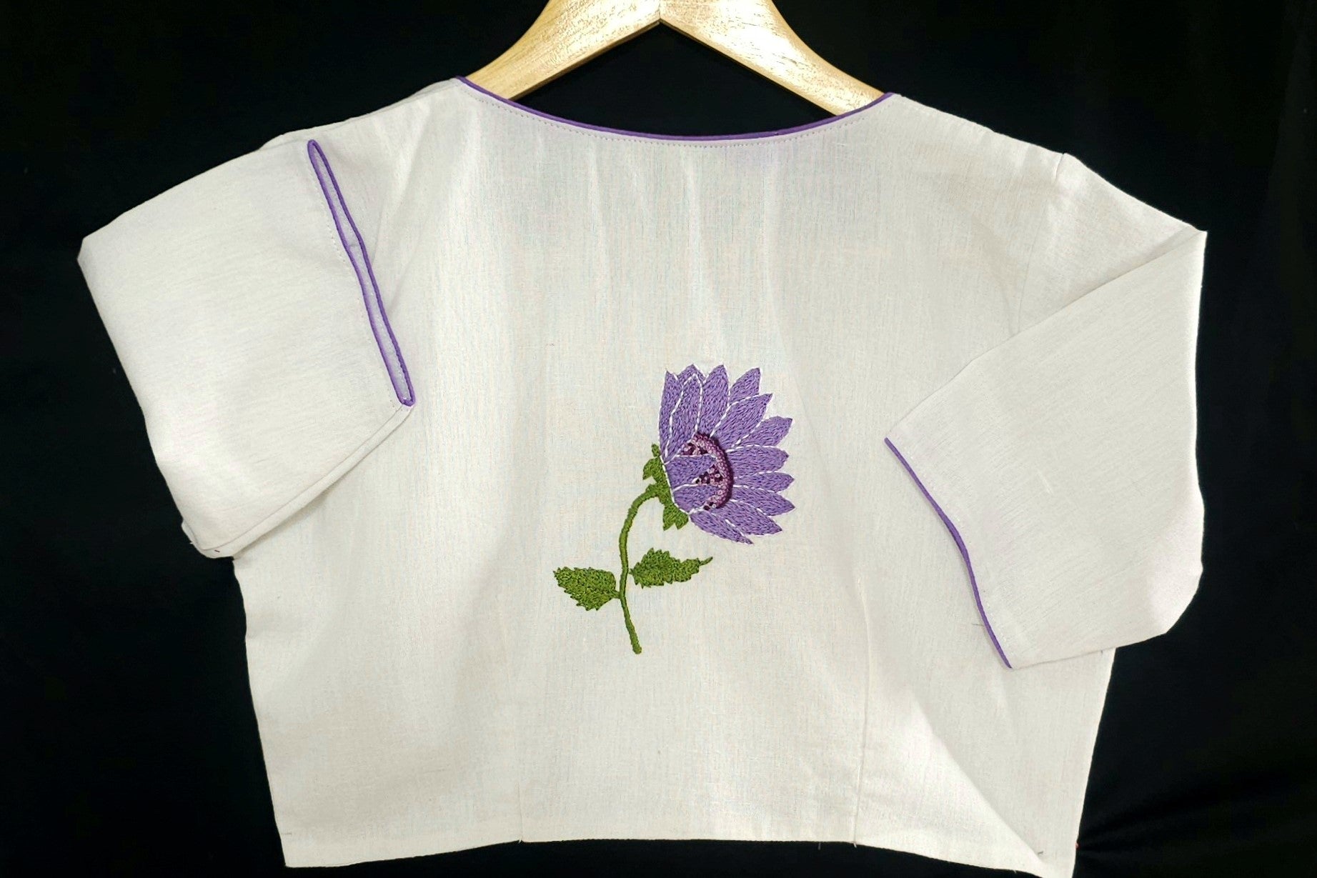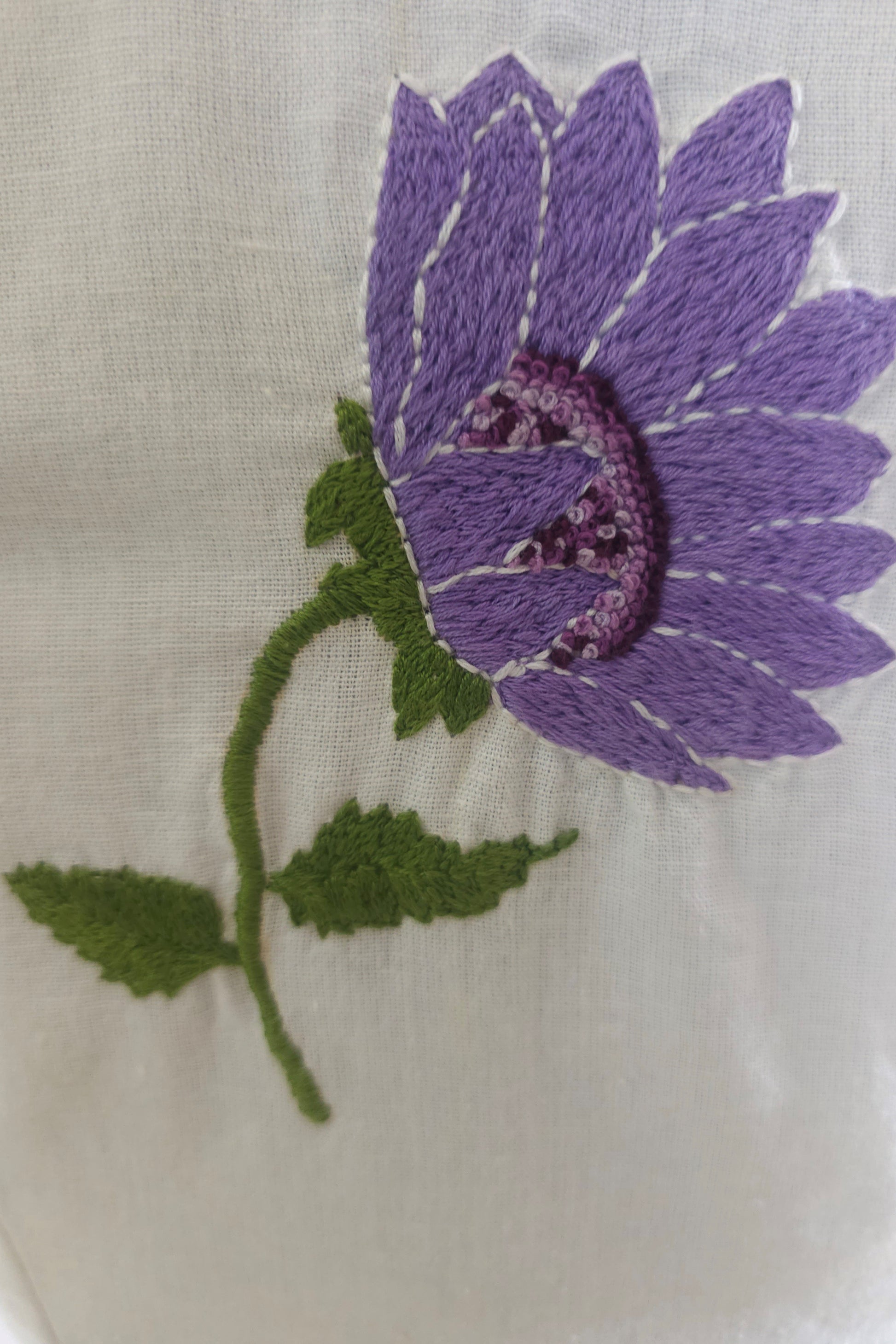 The 'Daisy Dream' blouse blooms with hand-embroidered Cape Daisy motifs, inviting you to wear your dreams with grace. Like petals unfurling, let delicate threads tell stories of blossoming elegance and the vibrant journey of aspirations.