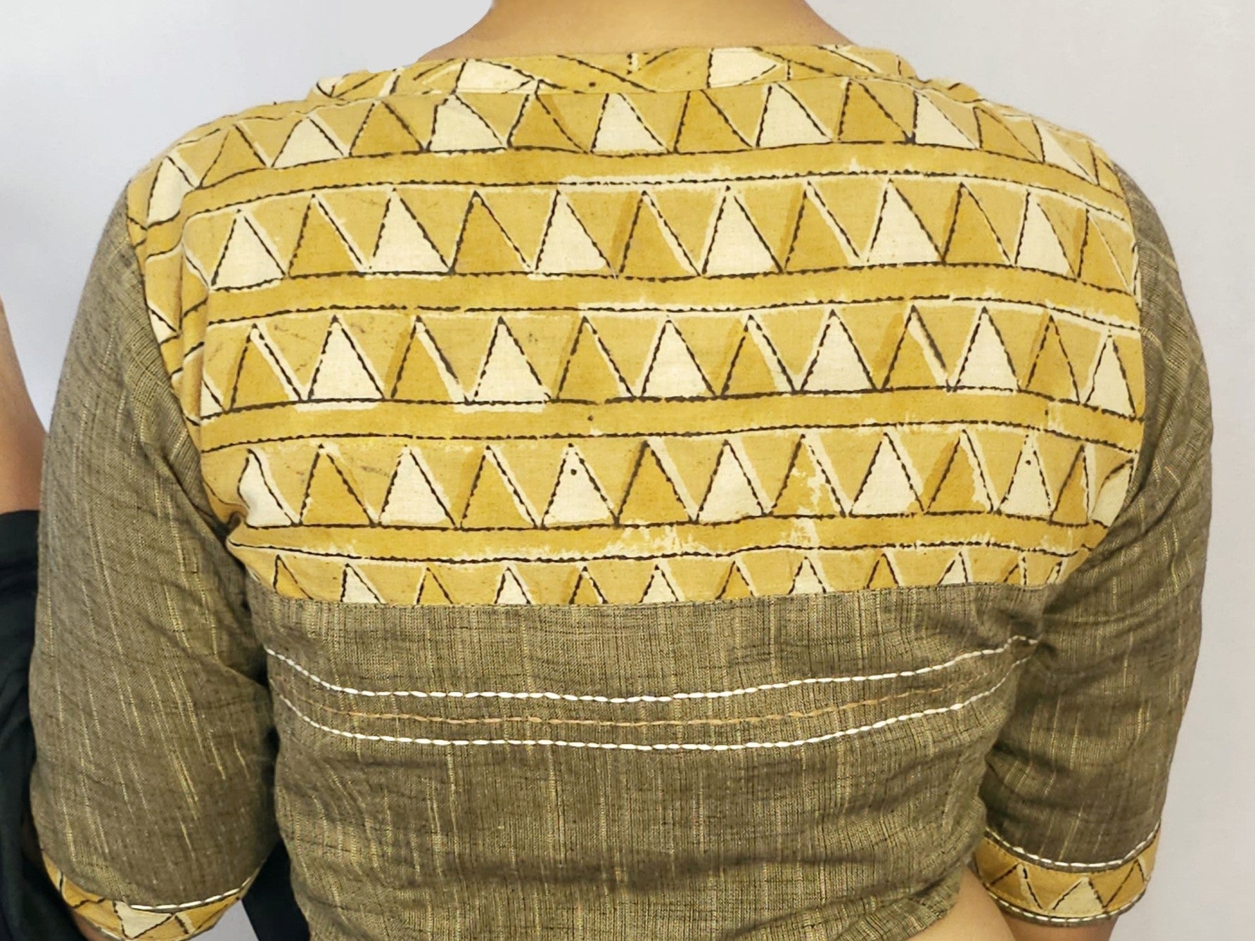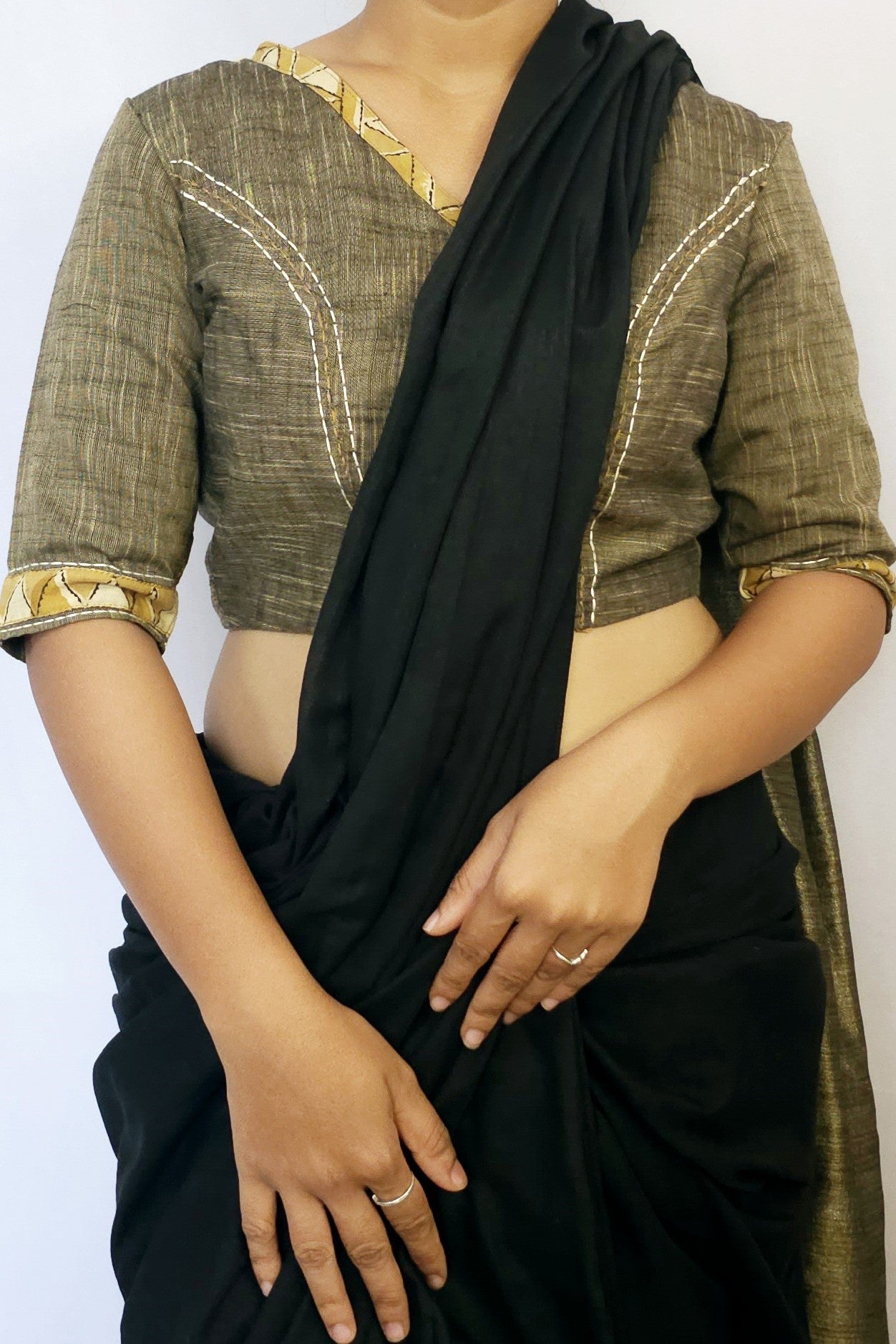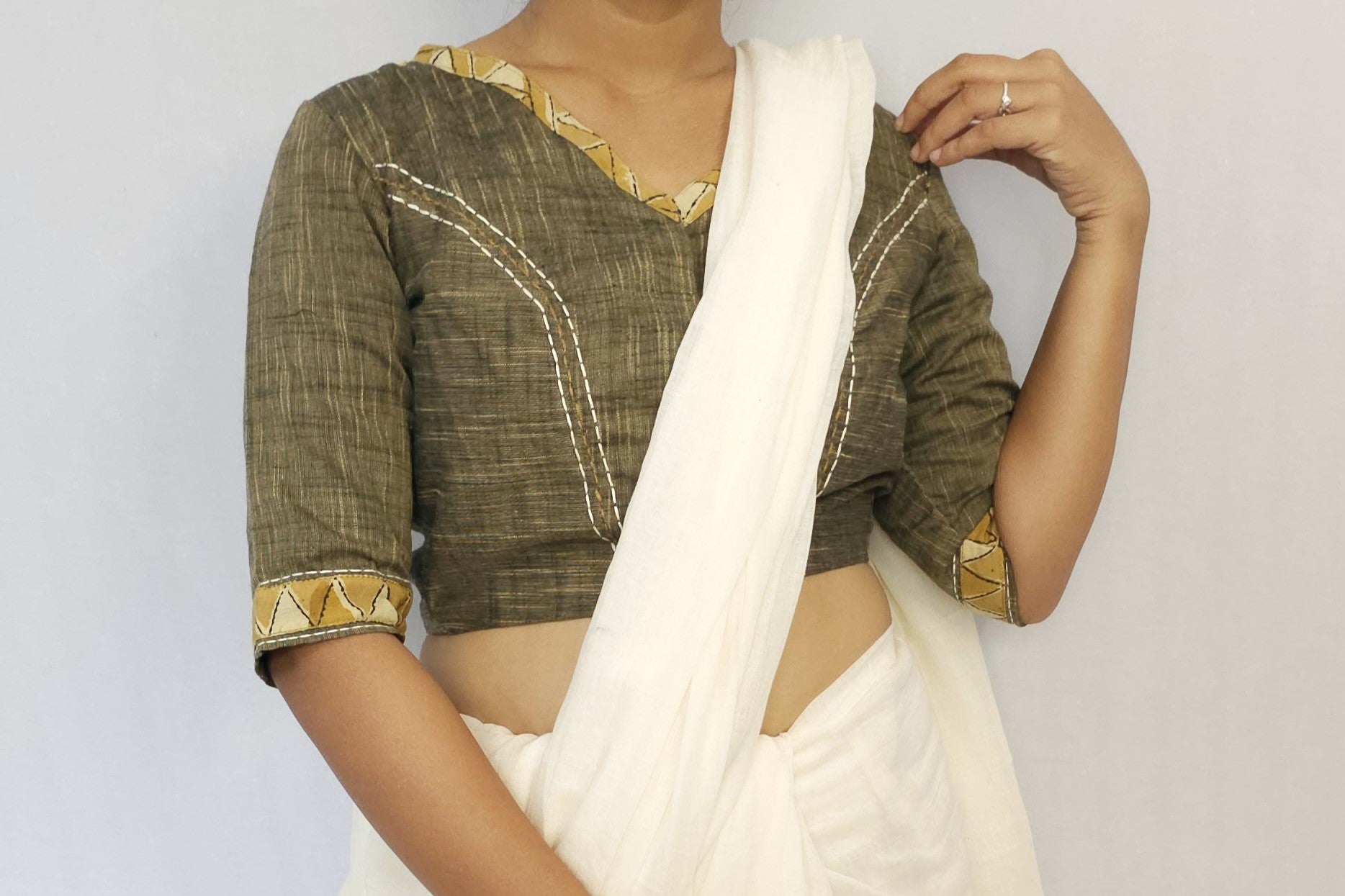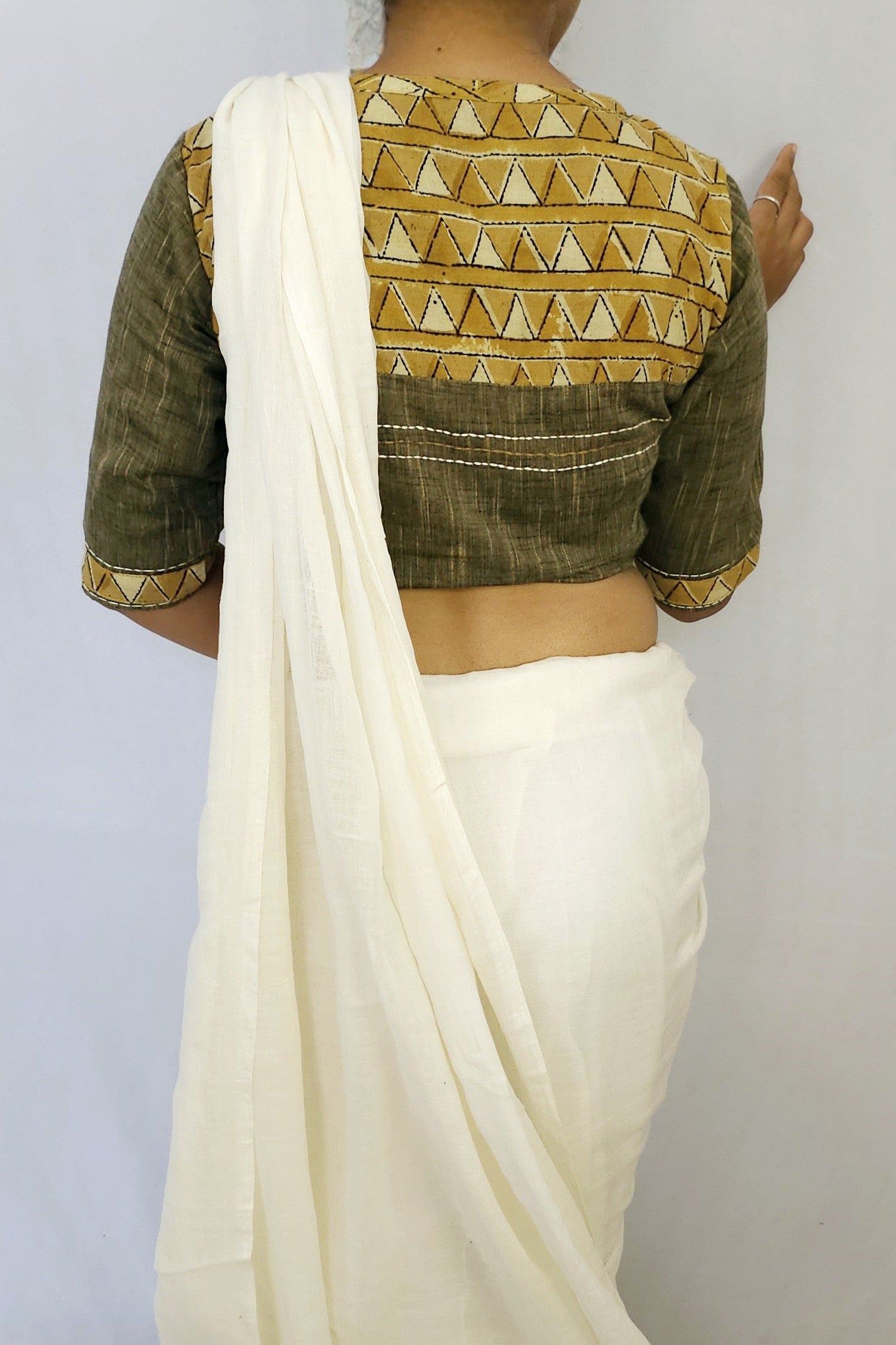 The Tantra Blouse features gentle handblock impressions and a touch of delicate embroidery, embodying refined grace.