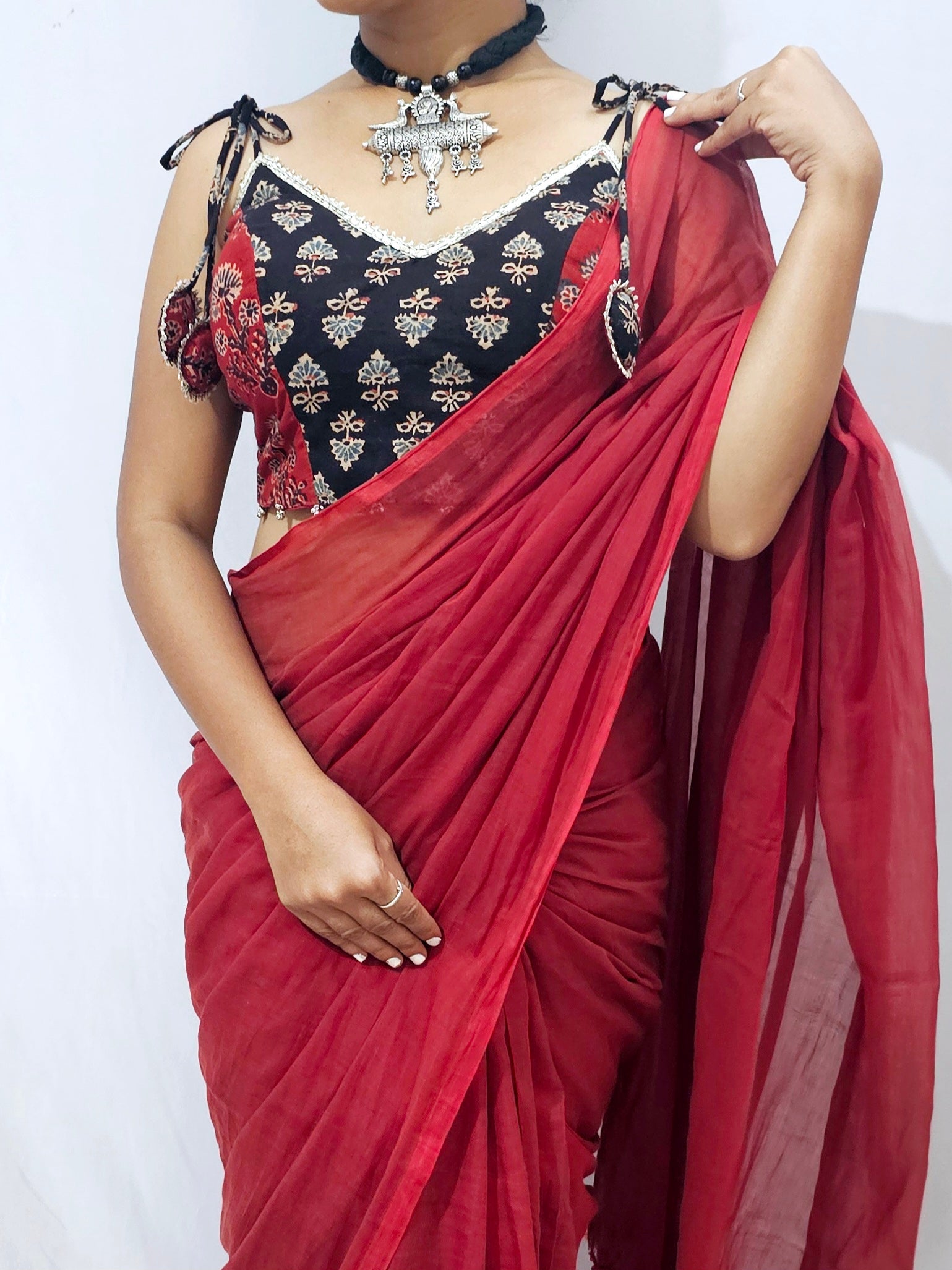 Introducing the "Inaya blouse", where elegance meets extravagance in the intricate details of handcrafted tassels and delicate gota patti embellishments adorning its silhouette, gracefully commanding attention with every sway, making a statement of sophistication and grace wherever you go.