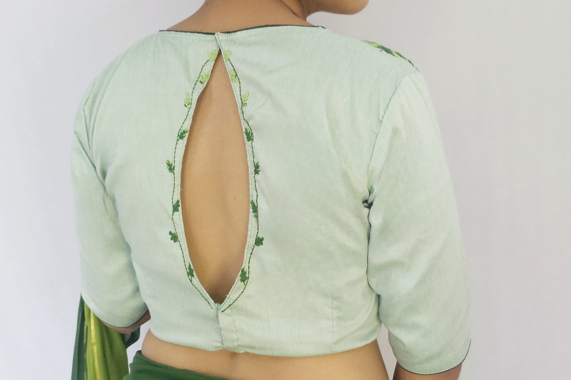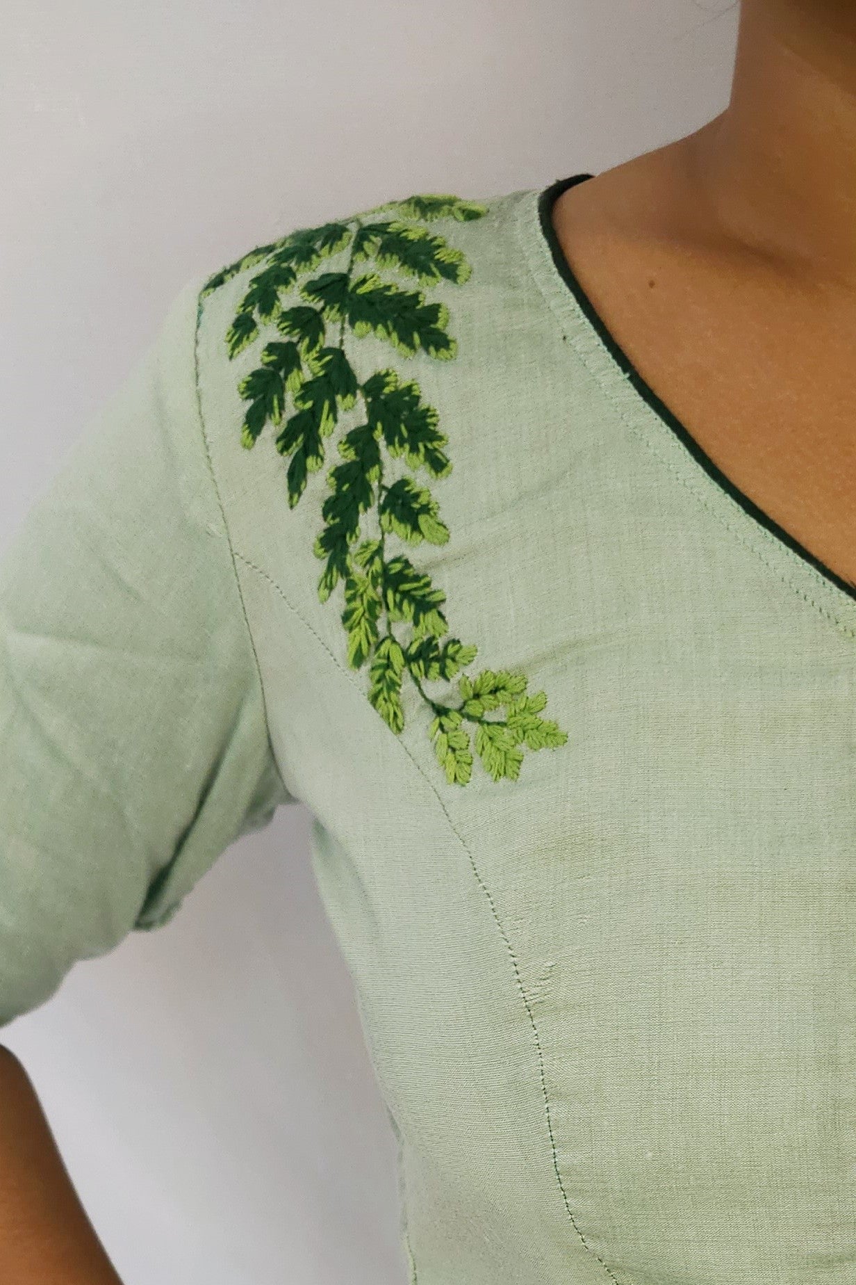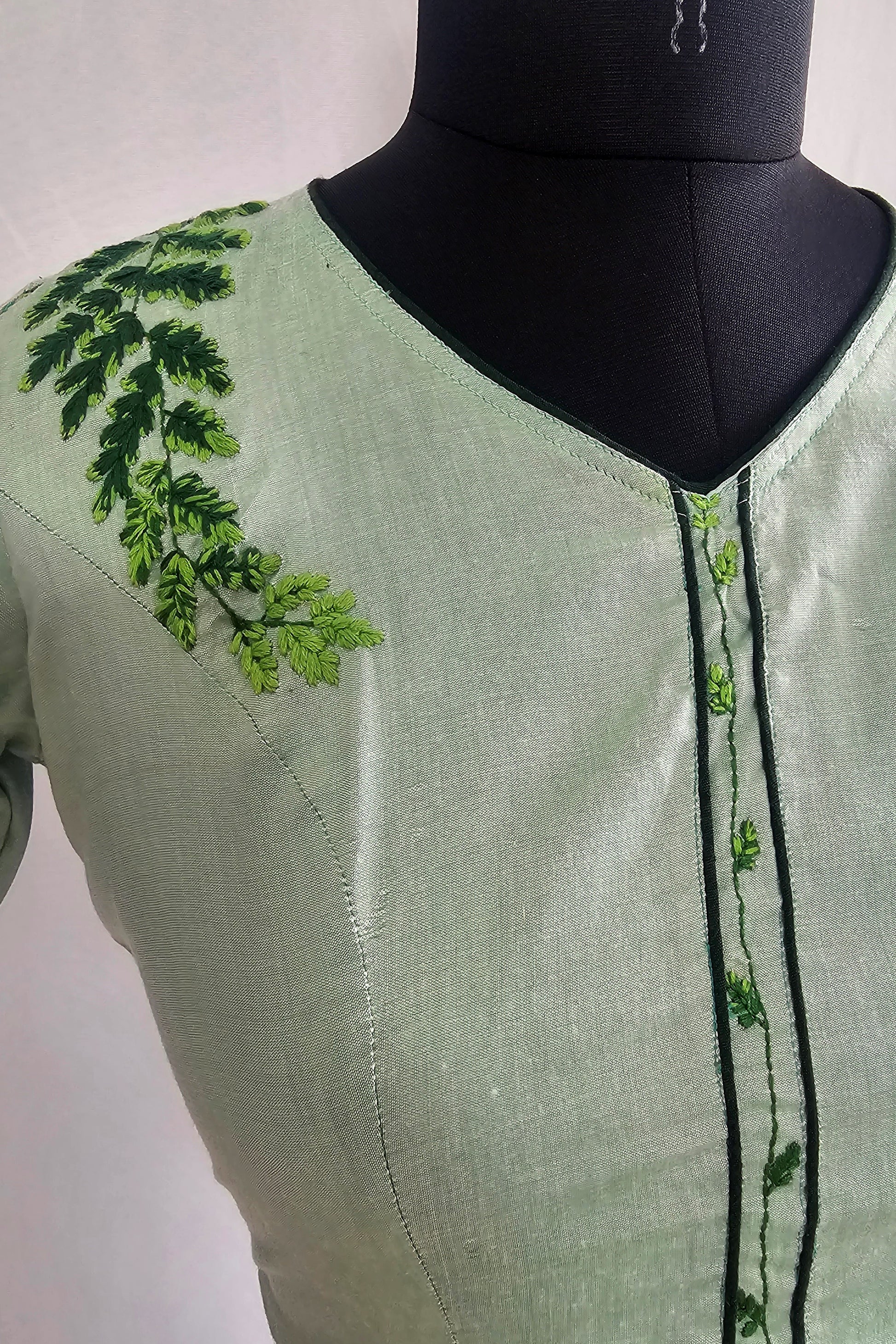The 'Parnika Blouse', adorned with hand-embroidered leaves, invites you to step into a world of natural elegance. Each leaf tells a story of artistry