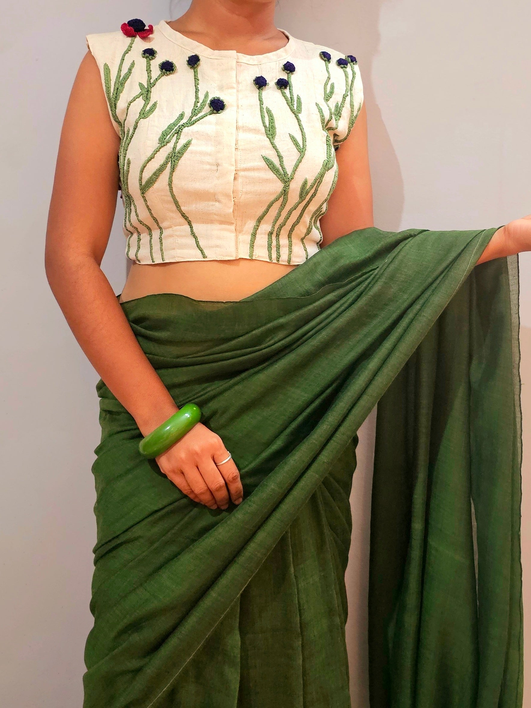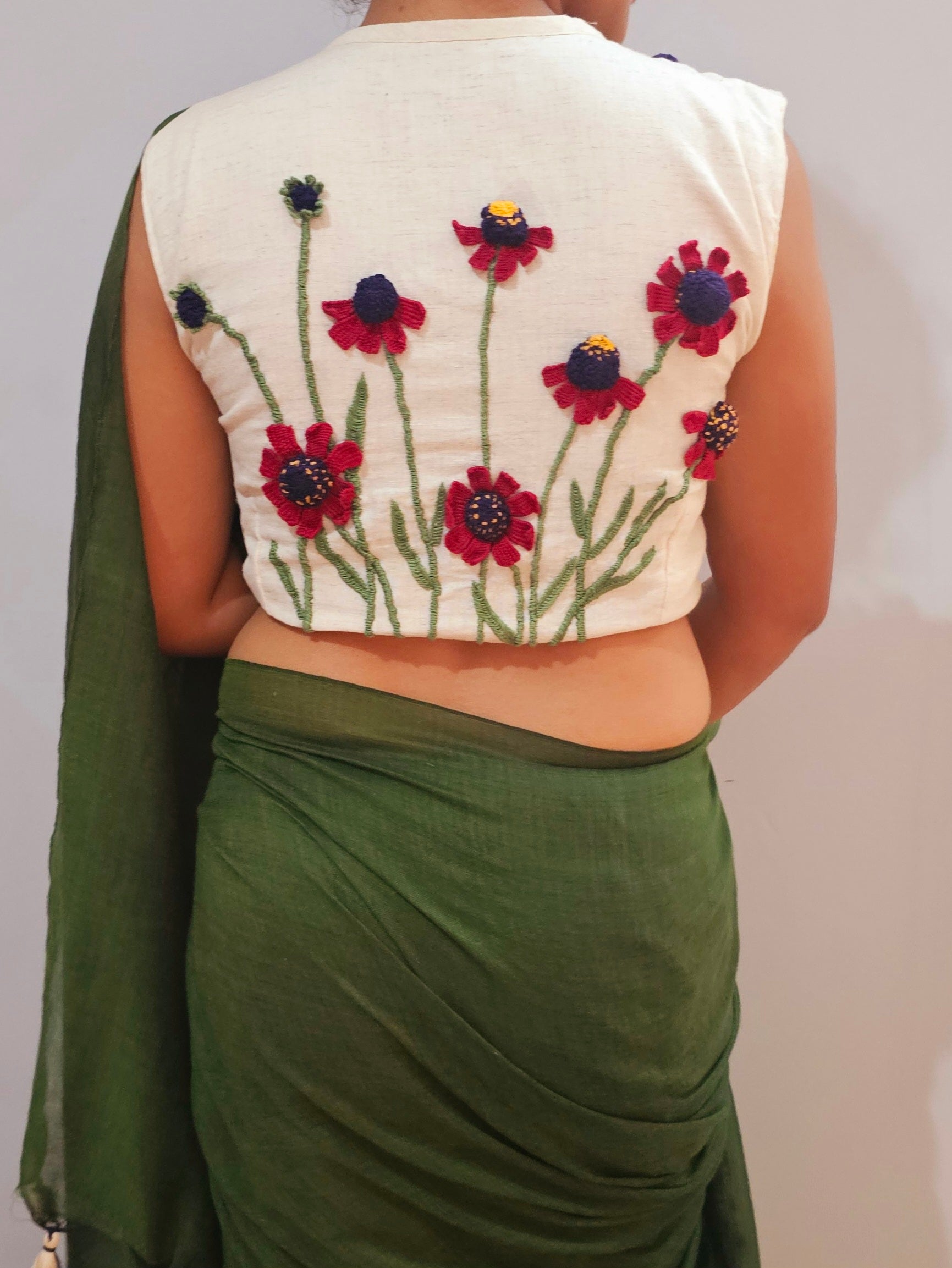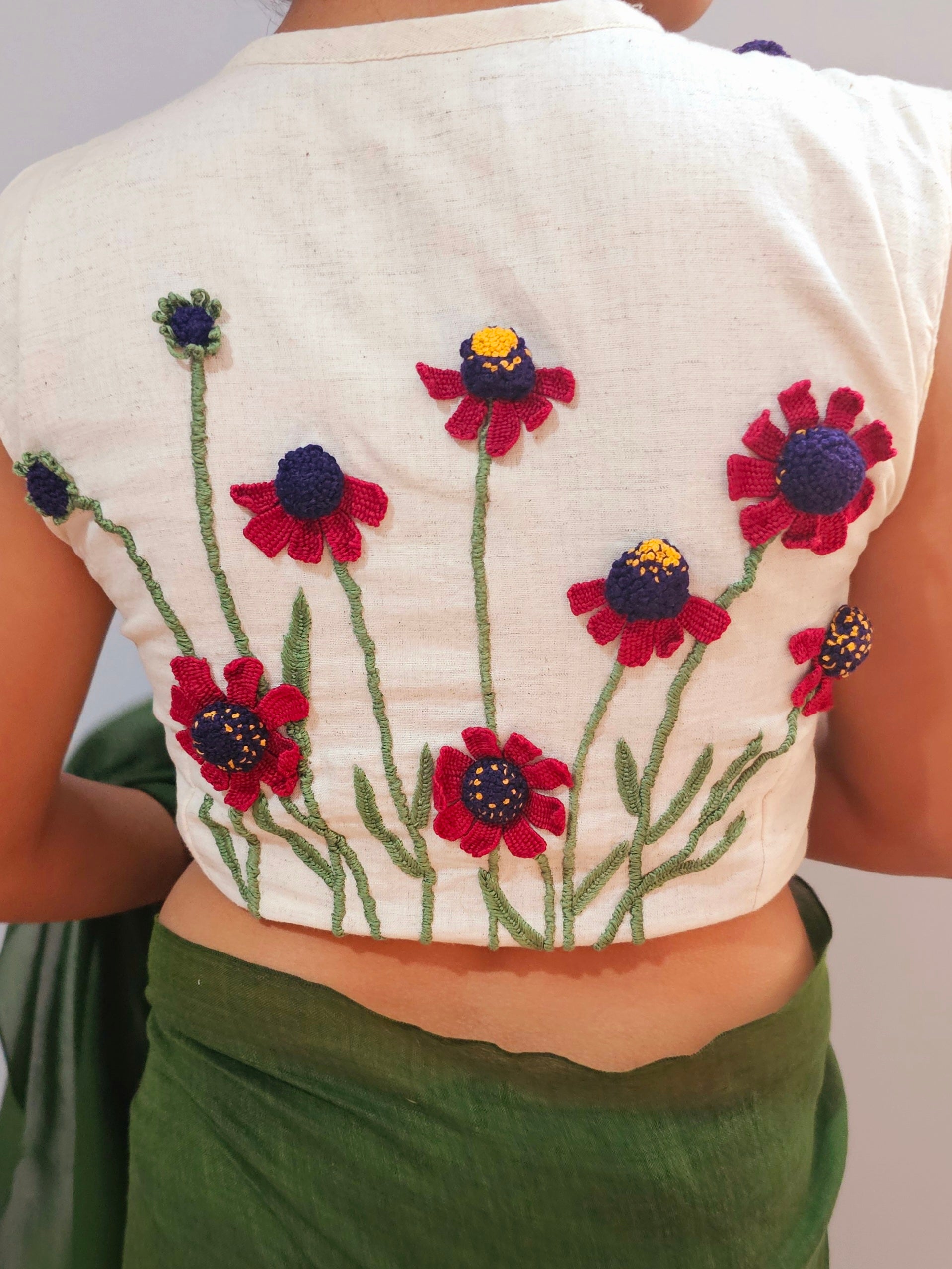 Dive into a garden of elegance with our Baagbahar Blouse, a pinnacle of our premium collection. Embracing the essence of the majestic Helenium flower, its intricate 3D floral motifs captivate, adding a touch of ethereal charm to your ensemble. Let your style bloom with every wear.