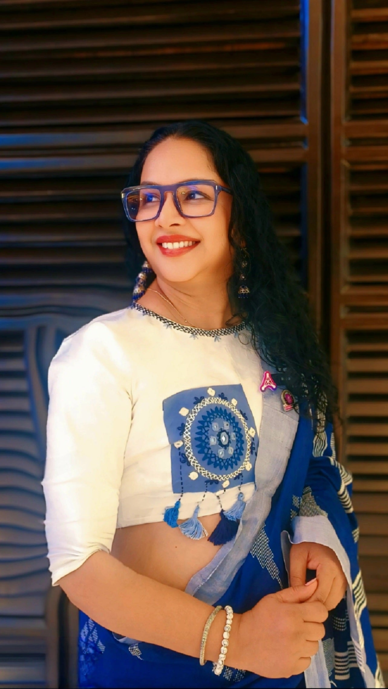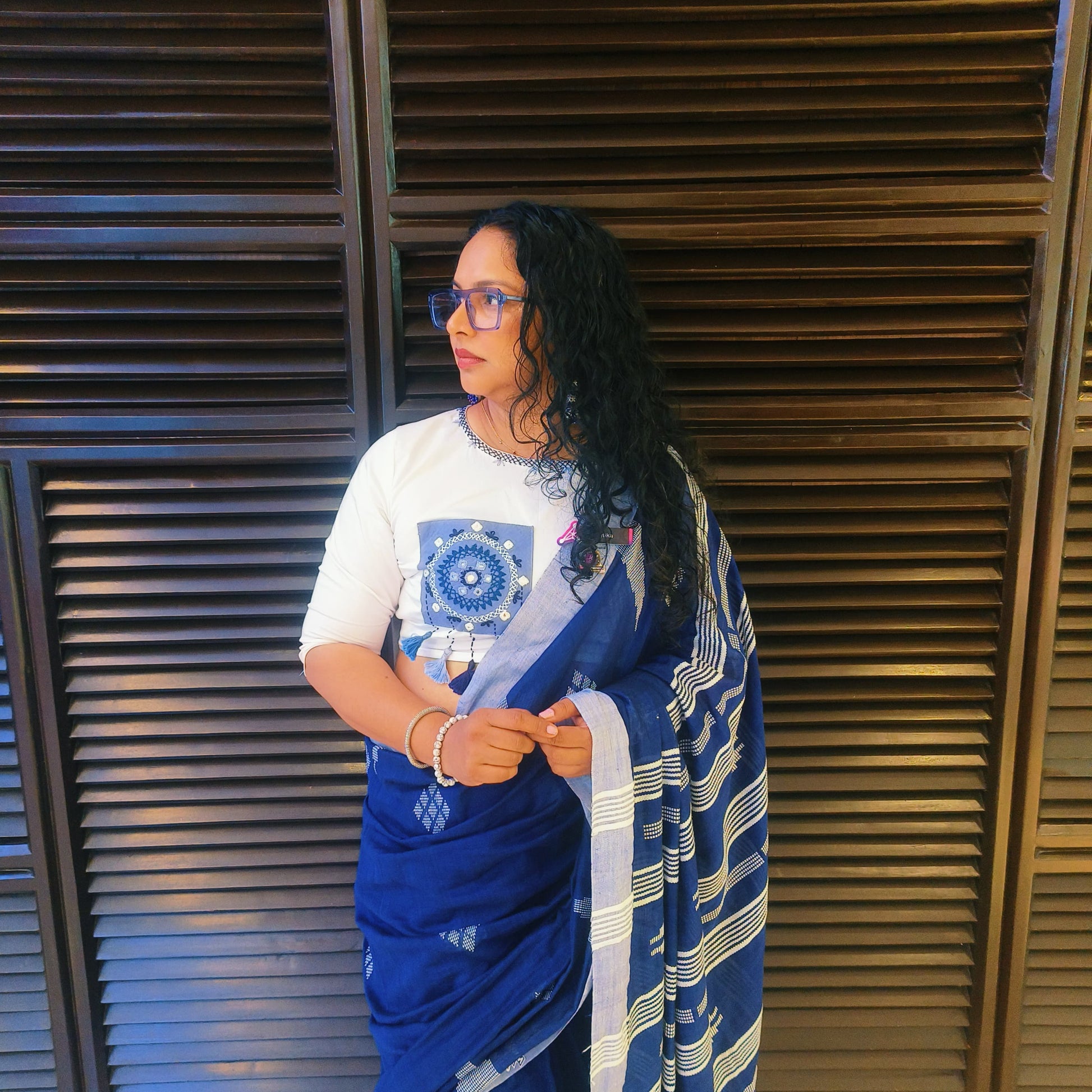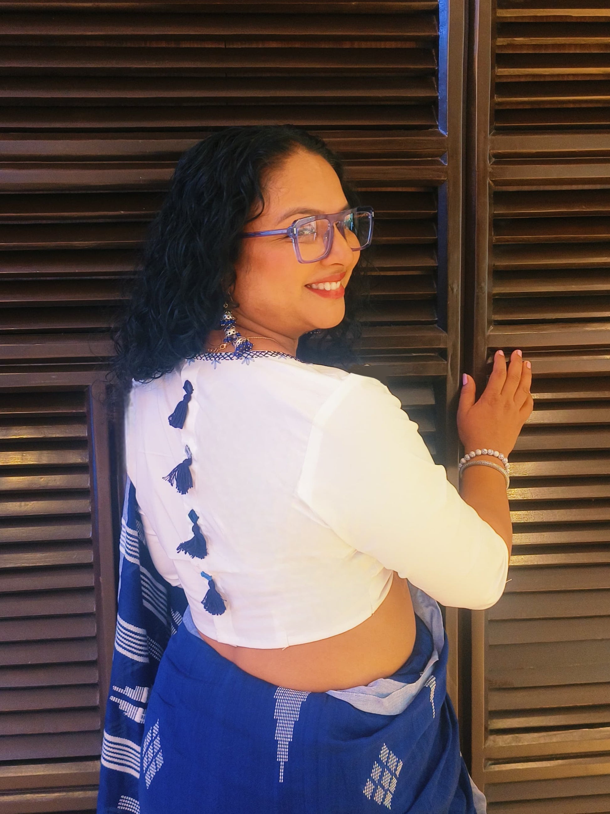 Suvira Blouse: A perfect blend of practicality and artistry, the Suravi Blouse features a thoughtfully designed pocket with delicate embroidery on the front, adding charm to its utility. The back is adorned with intricate mirror work and tassel embellishments, creating a striking visual appeal with every movement. A seamless fusion of tradition and modernity, Suravi is crafted for the woman who values both style and convenience.