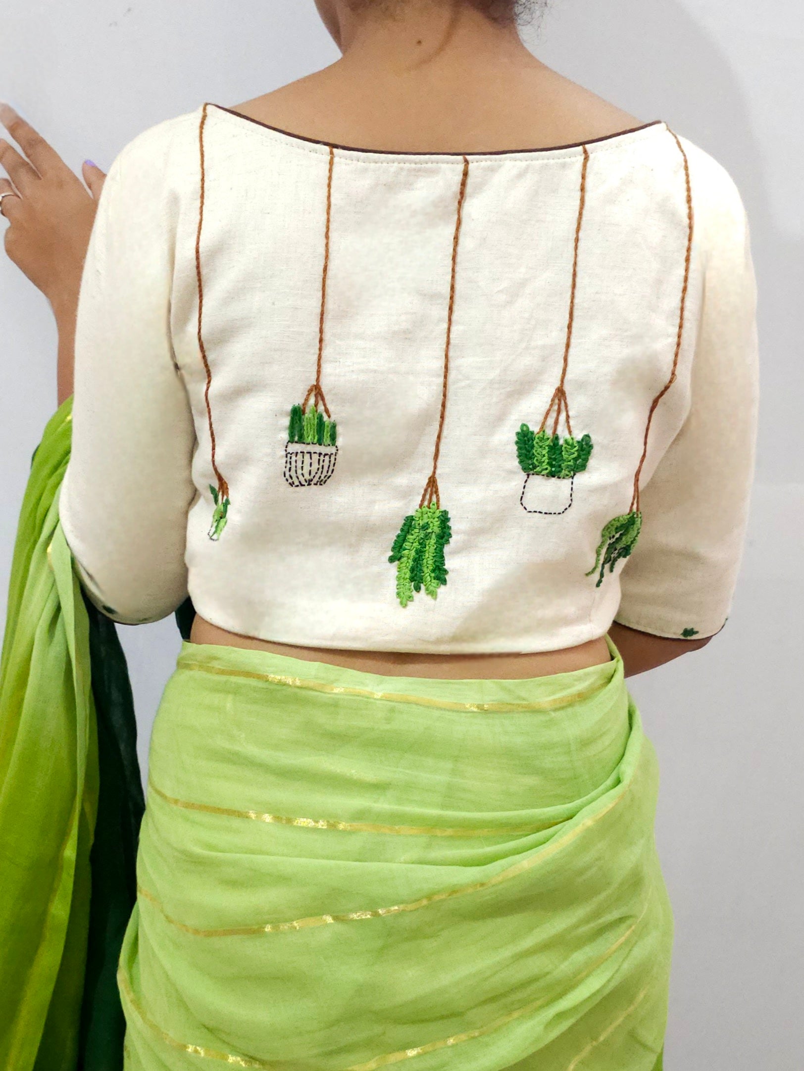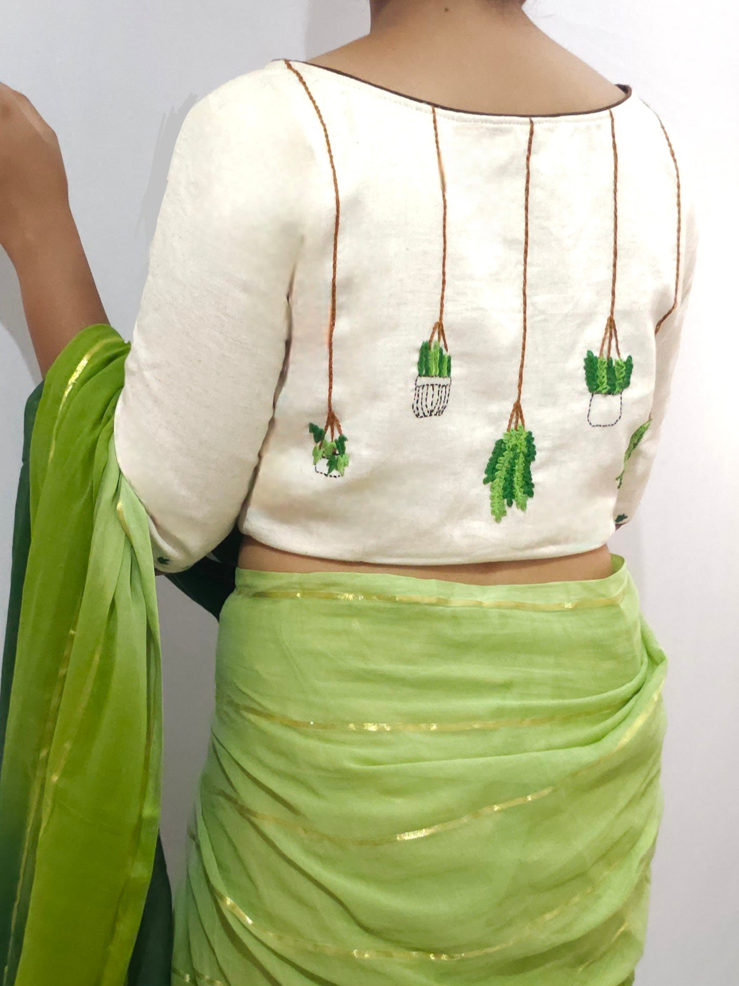 The 'Vine Veil' blouse, adorned with intricately hand-embroidered hanging vines, offers a lush display, inviting you into a garden of style.
