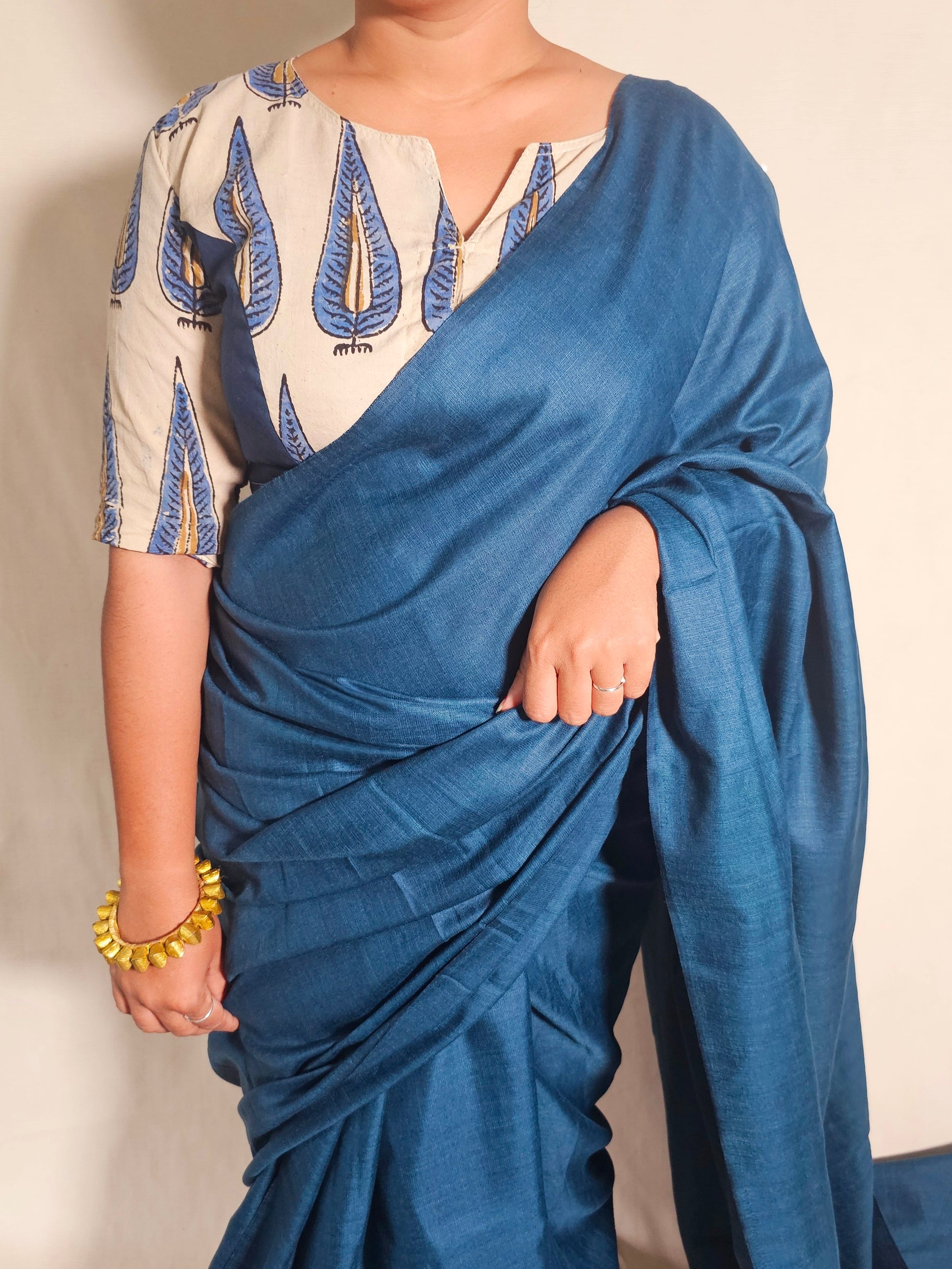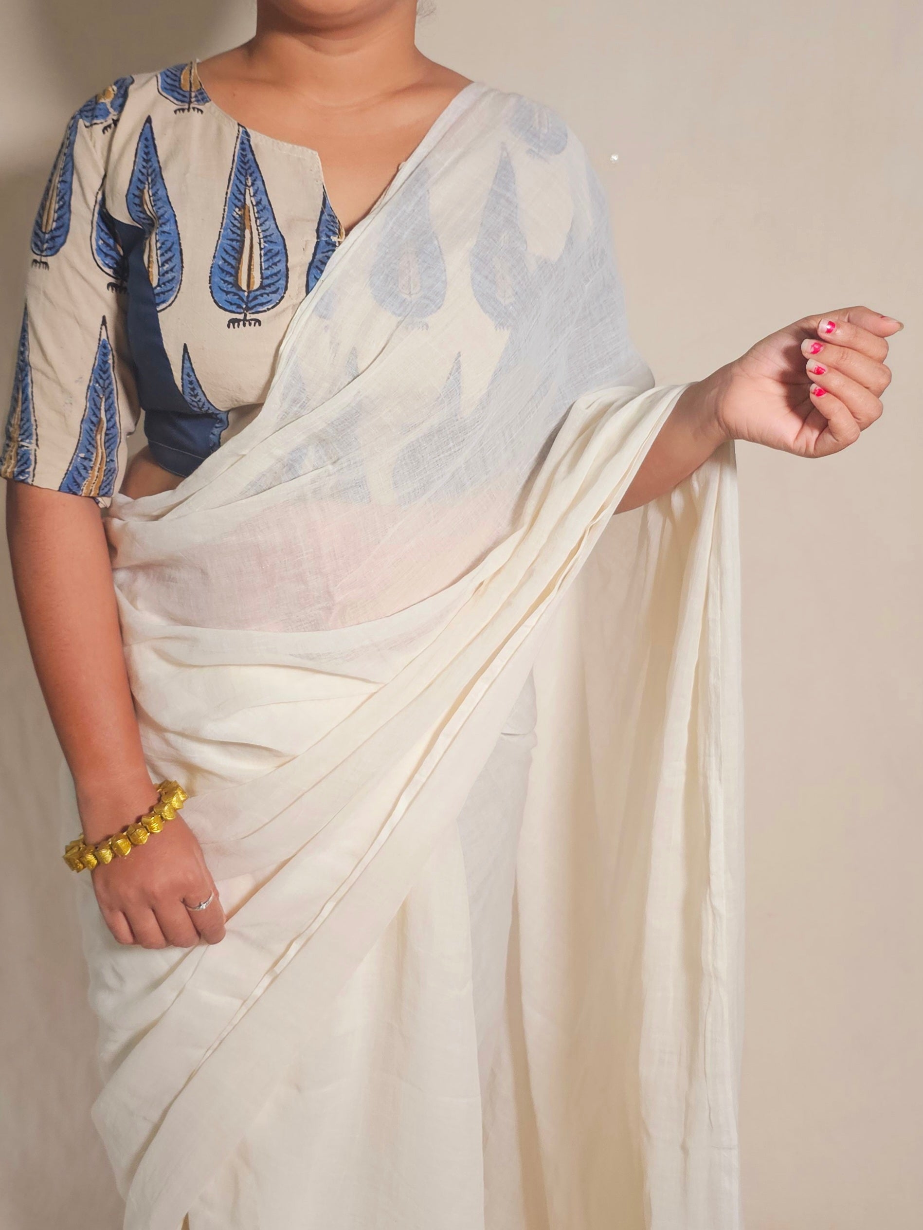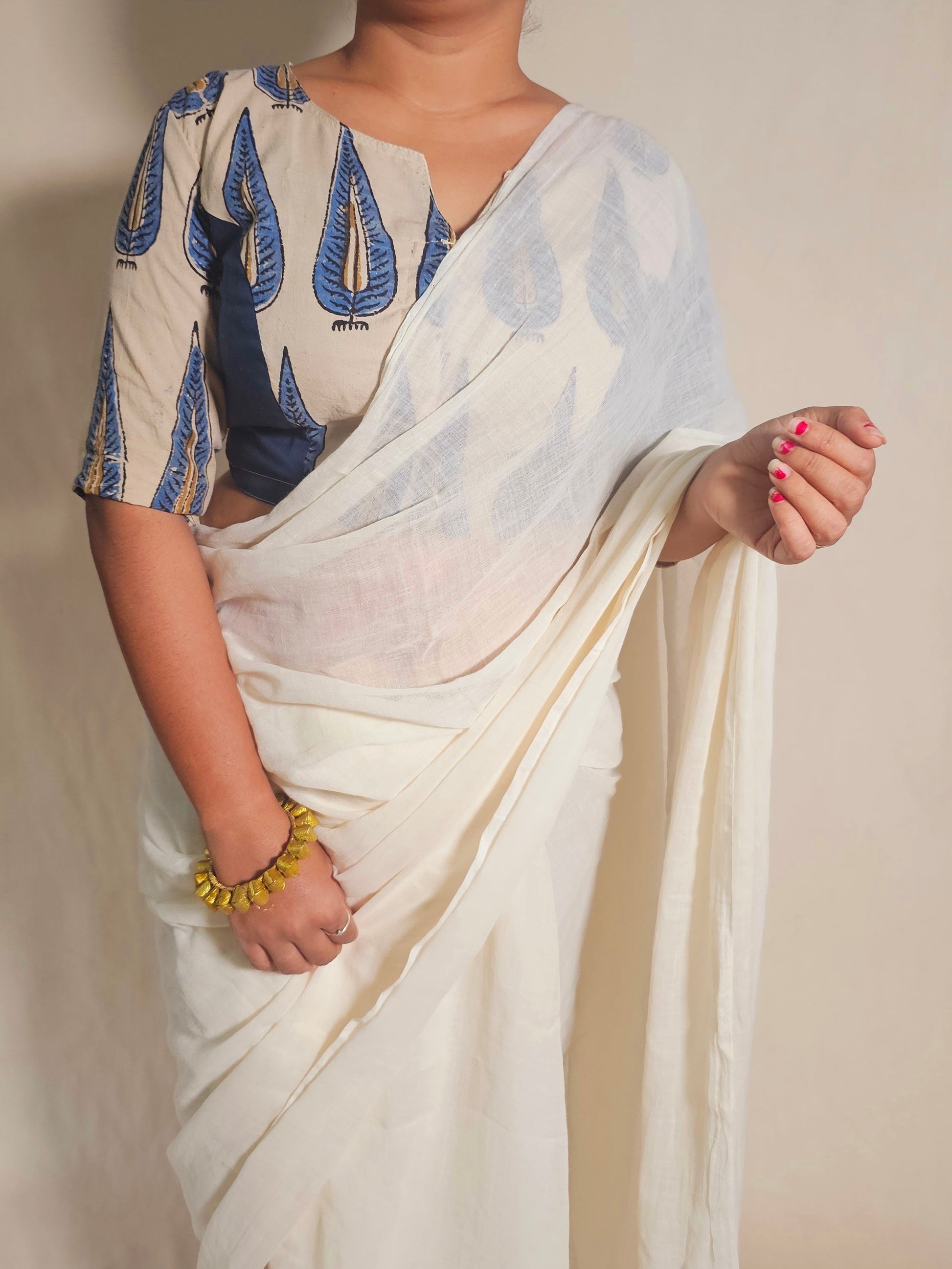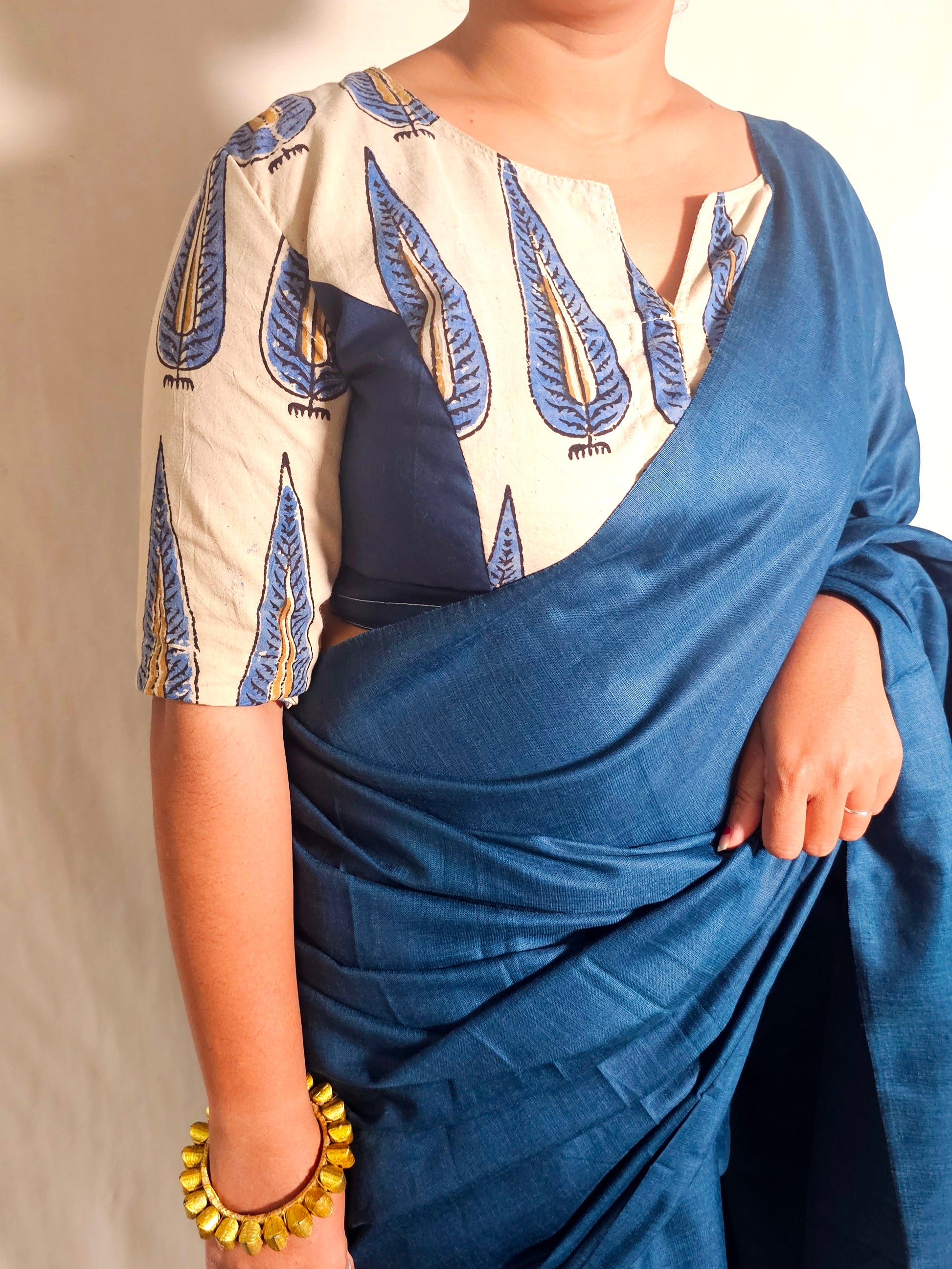 Warli Akriti Blouse : With hand-appliquéd Warli art, our blouse showcases the grace of a rural lady, celebrating the beauty of simplicity and culture in every thread.
